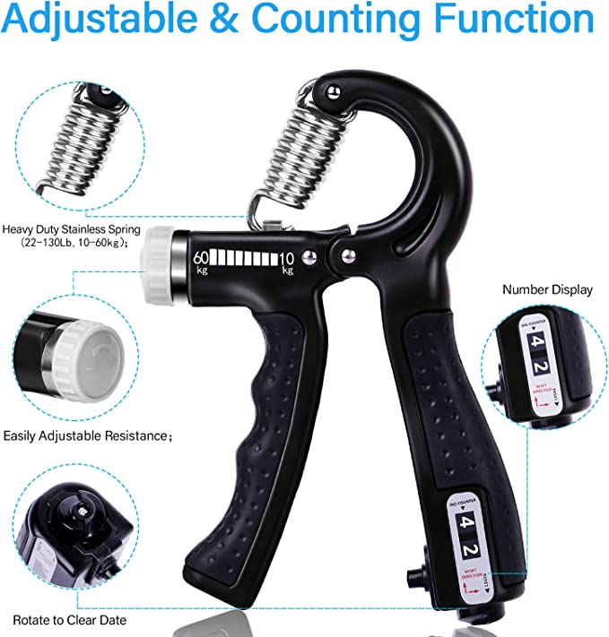 • 【Suitable for All Age Group】The hand grip strengthener is adjustable between 22-132lbs (10kg-60kg),suitable to adults, elderly ,adolescents, men and women, hand grip exerciser strengthener could exercise finger flexibility, palm grip, increase arm muscles and strength. It is ideal for musicians, fitness people and sports people to train.